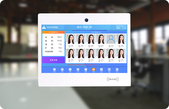 到了考勤時間點,電子班牌自動開啟攝像頭進行人臉識別工作,記錄全班考勤人數,